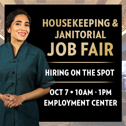 We've got job fairs scheduled at the Employment Center! Click on the Upcoming Hiring Events tab for information and to apply.